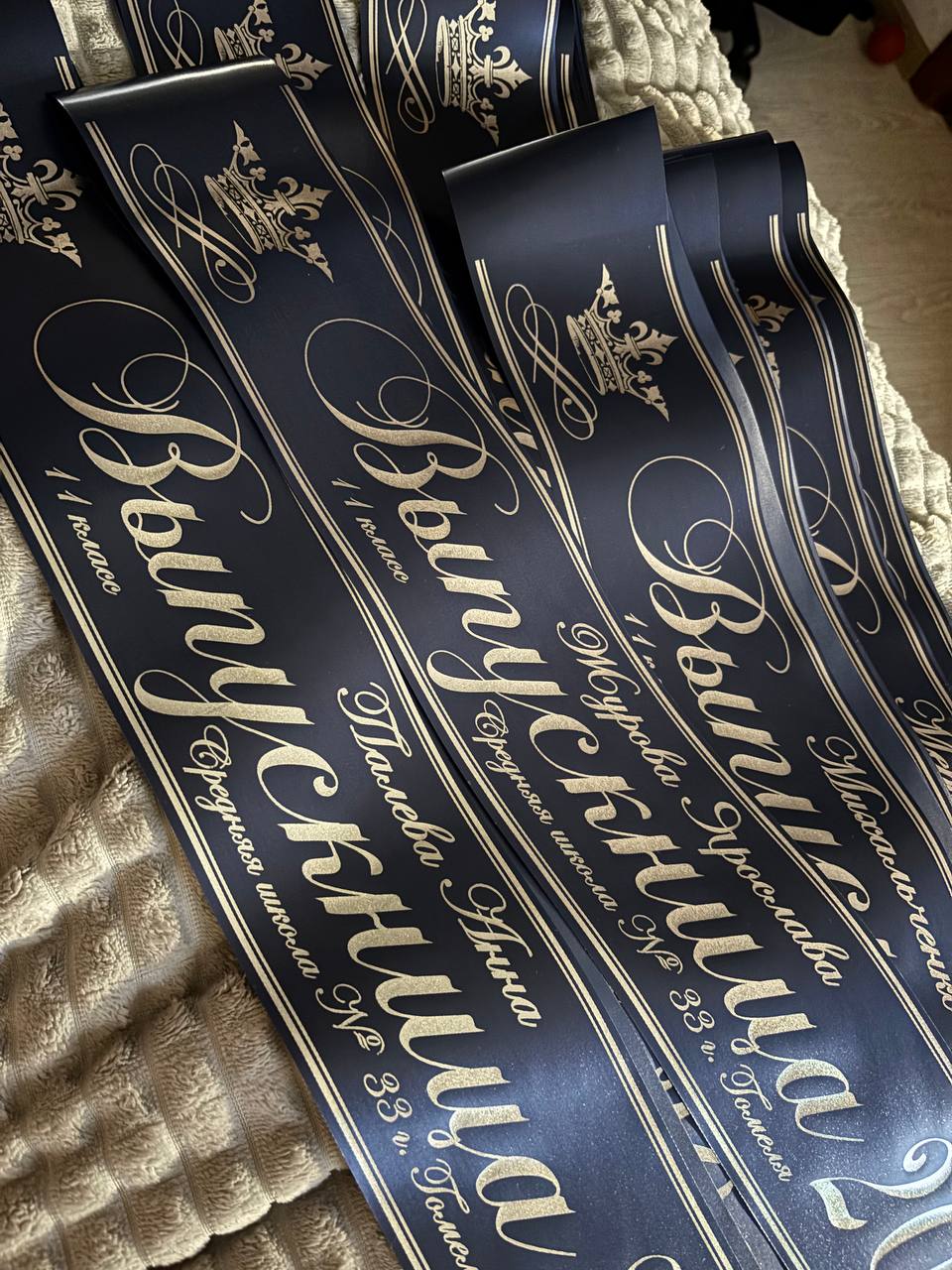 Создайте неповторимый образ с лентами выбранного цвета и дизайна — индивидуально для каждого класса и события.