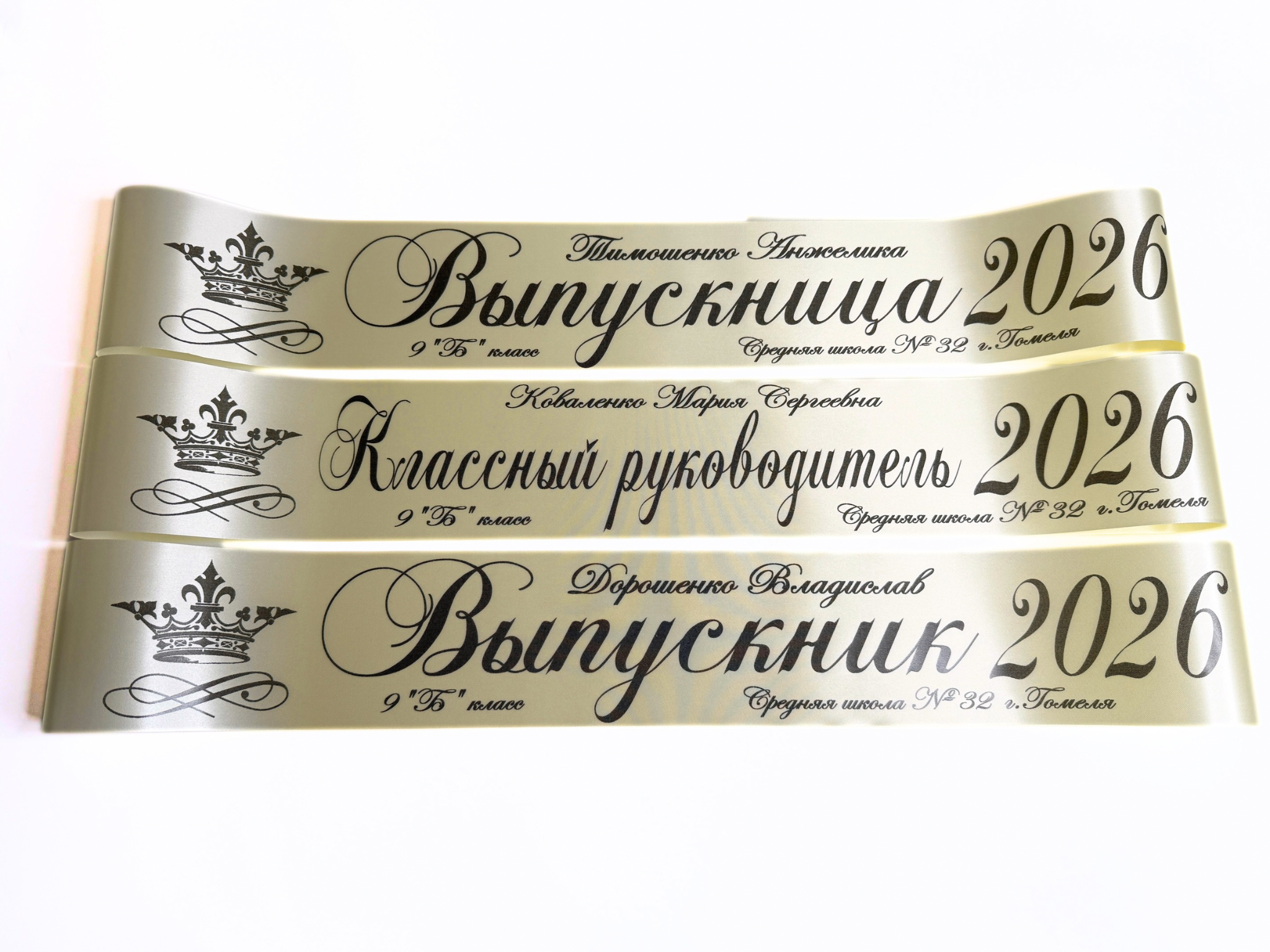 Мы создаём ленты, которые становятся частью важного дня. Предлагаем готовые макеты, возможность выбора цвета, эмблем и аксессуаров, чтобы каждая деталь отражала индивидуальность вашего класса.